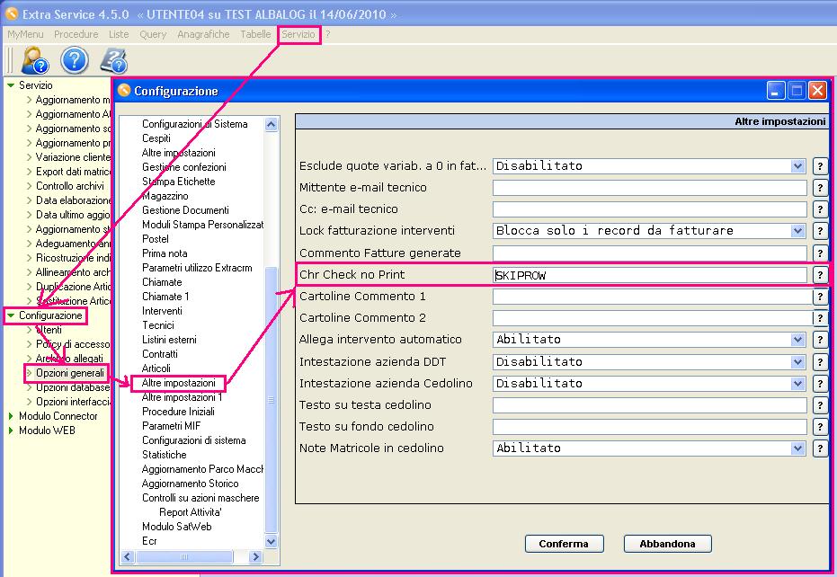 All'interno dei parametri di configurazione di Extra Service, occorre inserire la seguente istruzione in Servizio>Configurazione>Opzioni Generali>Altre Impostazioni (sotto la voce di menù "Articoli"):